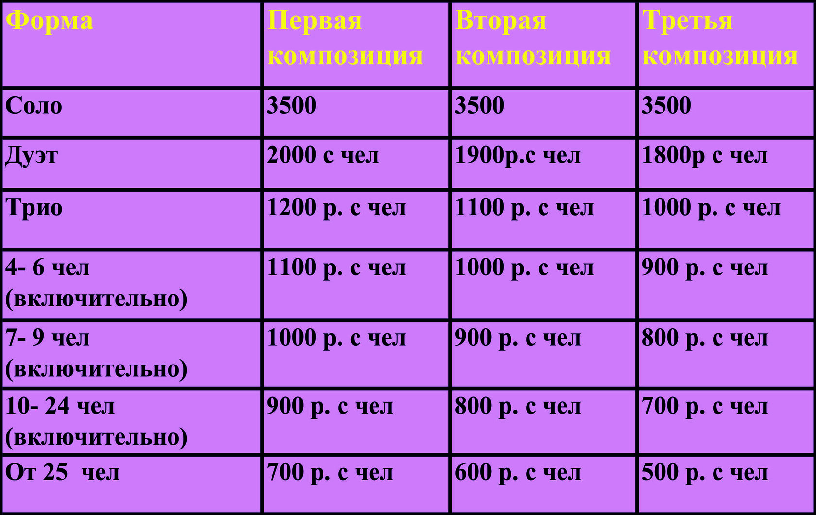 - Ансамбль (от 7 человек и более)